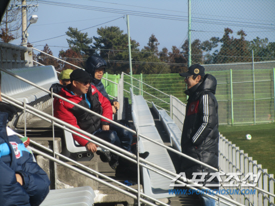신태용 감독이 성남 일화와 상주 상무의 연습경기를 관전했다. 경기후 용현진 강성관 장석원 박상희 등 성남 출신 제자들과 악수를 나누며 격려했다.