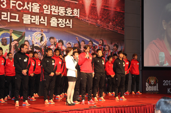FC서울 선수단이 '2013년 FC서울 임원동호회 K-리그 클래식 출정식'에 참석했다. 최용수 감독을 비롯한 선수단 29명은 18일 서울 삼성동 그랜드인터컨티넨탈 2층 그랜드볼룸에서 열린 FC서울 임원 동호회 주최 K-리그 클래식 출정식에서 동호회원들과 뜻깊은 자리를 가졌다.