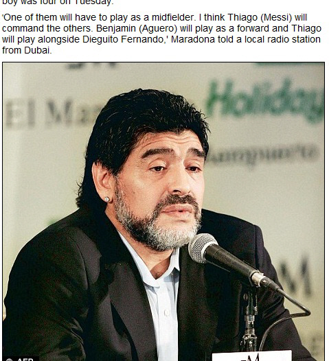 마라도나는 "아마도 메시의 아들인 티아고가 가장 축구를 잘할 것 같다"며 "아게로의 아들인 벤야민이 스트라이커로 나서고 티아고와 페르난도가 함께 뒤를 받칠 것"이고 했다. 아버지와 할아버지의 재능을 이어받았다면 분명 세계 최고의 조합이 만들어질 수 있다. 그러나 말처럼 쉽지는 않을 것 같다. 1980년대에 마라도나의 아들인 디에고 주니어도 선수생활을 했지만, 그리 성공을 거두지 못한 바 있다.
