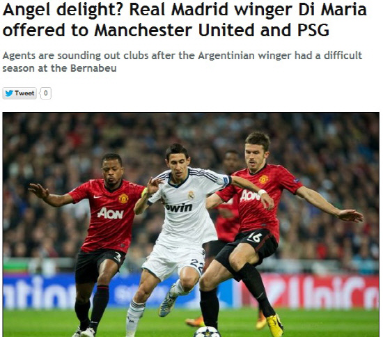 20일(한국시각) 영국 일간지 데일리미러는 디 마리아가 팀내 무관심으로 팀을 떠날고 싶어한다고 보도했다. 현재 그의 에이전트도 이에 맞춰 타팀과 접촉중이라고 밝혔다. 디 마리아는 주급이 인상된 금액으로 재계약을 원하고 있지만, 다른 선수들에 빌려 이렇다할 논의를 하지 못하고 있다. 디 마리아는 이러한 상황에 불만을 품고 있다. 디 마리아는 레알 마드리드 입성 후 부동의 주전으로 활약하고 있다.