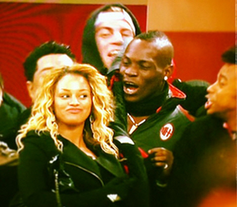 '밀란맨'으로 완벽 변신한 마리오 발로텔리(AC밀란)이 여자친구와 함께 벤치에서 팀의 승리를 환호했다.
