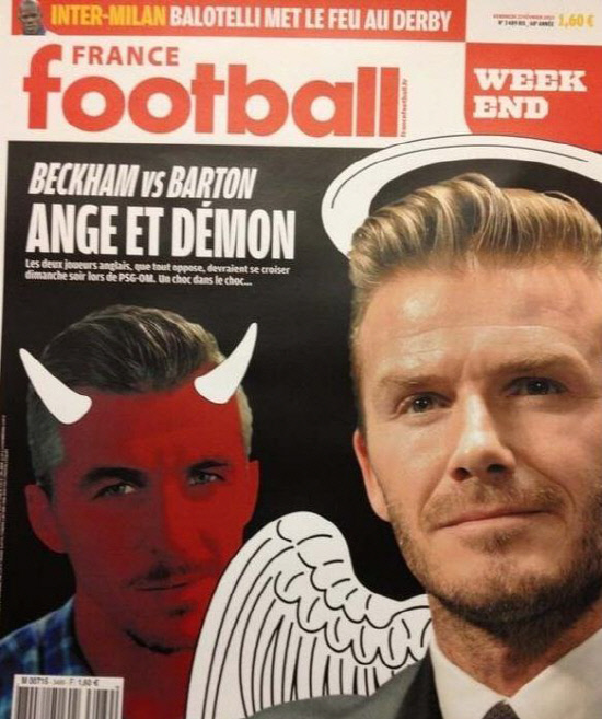 프랑스의 유력 축구 잡지 '프랑스 풋볼'은 '베컴 vs 바튼' 대결의 재미를 극대화했다.