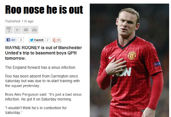 웨인 루니(맨유)가 QPR전에 결장할 것으로 보인다.
