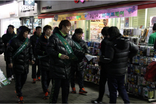 충주 험멜이 22일 충주시민들을 만나기 위해 충주시 성서동의 로데오거리와 연수동 시인의 공원 거리 홍보에 나섰다.