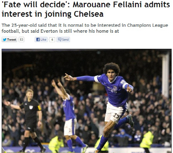 에버턴의 미드필더 마루앙 펠라이니가 첼시행에 대해 긍정적인 반응을 보였다.