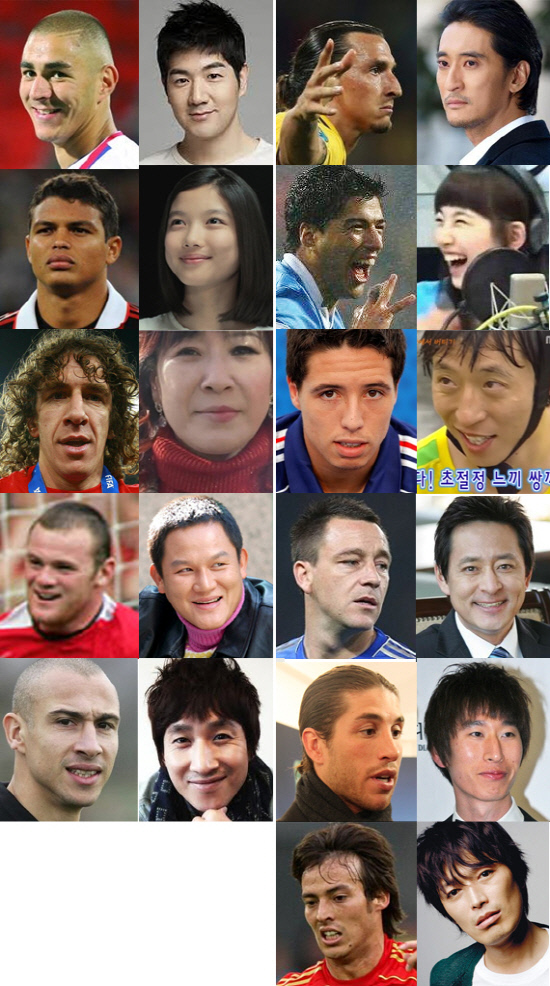 해외 축구 스타와 국내 연예인 스타의 닮은 꼴. 때가 되면 심심풀이로 나오는 주제지만 언제 봐도 재미있다. 닮은 정도가 강할수록 그렇다.