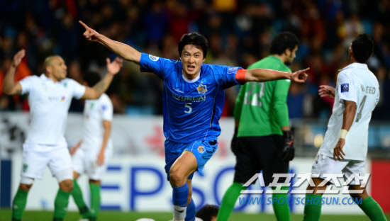 2012아시아챔피언스리그 결승전에서 알아흘리(사우디아라비아)를 상대로 선제골을 터트린 곽태휘가 환호하고 있다. 울산=송정헌 기자 songs@sportschosun.com