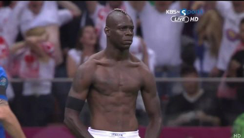 이탈리아 대표 공격수로서 그 경기에서 혼자 2골을 터뜨린 발로텔리는 전반 36분 두 번째 골을 성공시킨 뒤 그 자리에서 상의를 벗고 양팔에 불끈 힘을 주며 거만한 포즈를 취했다. 이탈리아를 결승으로 이끈 일명 '헐크 세리머니'는 이후 수많은 패러디를 양산하며 발로텔리의 트레이드마크가 됐다.