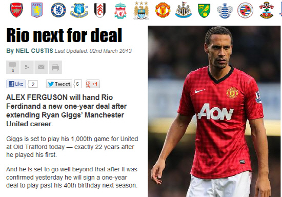 라이언 긱스에 이어 리오 퍼디낸드까지 맨유 유니폼을 계속 입을 수 있을까.