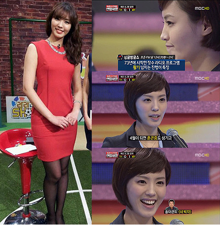 사진은 지난 2011년 MBC '일밤-신입사원'에 출연했던 정인영 아나운서의 모습. 사진 속 정인영은 아나운서의 상징인 짧은 헤어스타일로 깔끔한 스타일을 선보였다. 이어 아나운서 지원자답게 능숙한 말솜씨와 거침없는 언변을 선보여 시청자들의 눈길을 끌었다. 또한 정인영은 작은 얼굴에 또렷한 이목구비와 도자기 같은 피부로 청순미를 한껏 과시했다.