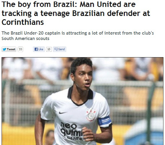 맨유, 수비보강 위해 브라질 10대 유망주와 협상중