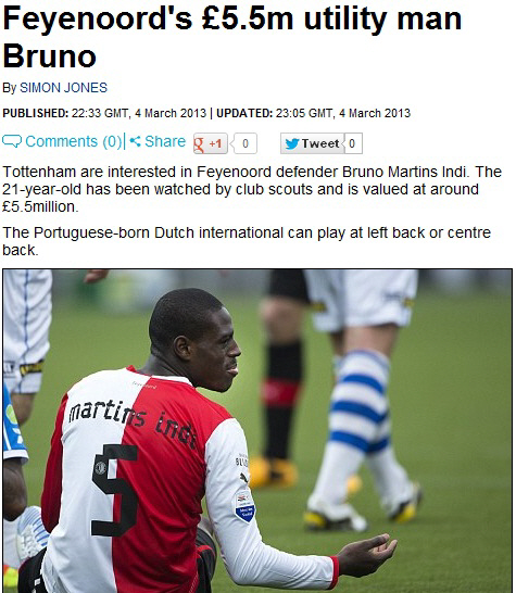 5일(한국시각) 영국 일간지 데일리메일은 토트넘이 브루노에 관심을 갖고 있다고 보도했다. 토트넘은 브루노를 지켜보기 위해 몇차례 스카우트를 파견한 것으로 알려졌다. 토트넘 뿐만 아니라 리버풀, 첼시, AC밀란 등도 브루노에게 러브콜을 보내고 있다.