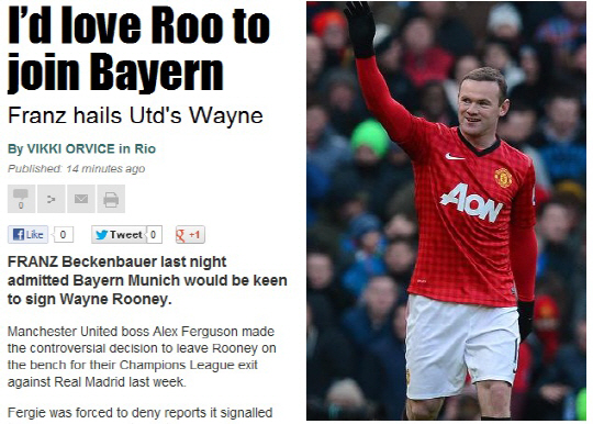 베켄바우어의 루니 사랑은 이번이 처음이 아니다. 과거 베켄바우어는 루니를 '세계 최고의 선수 중 하나'라고 극찬한 바 있다. 바이에른 뮌헨은 루니가 현재 받고 있는 25만파운드 주급을 맞춰줄 수 있는 몇 안되는 클럽 중 하나다. 새롭게 바이에른 뮌헨 지휘봉을 잡는 호셉 과르디올라 감독 역시 루니의 재능을 여러차례 칭찬한 바 있다.