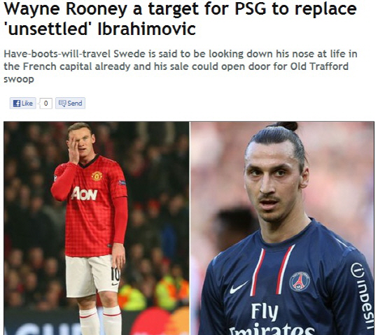 파리생제르맹은 이브라히모비치의 대체자를 찾기 위해 루니에 눈길을 돌렸다. 루니는 지난 레알 마드리드와의 유럽챔피언스리그에서 선발명단에 제외되며 방출설에 시달리고 있다. 알렉스 퍼거슨 감독의 스타일에 비추어 실현 가능성이 높은 시나리오다. 3500만파운드면 맨유도 충분히 현혹될만한 금액이기도 하다.