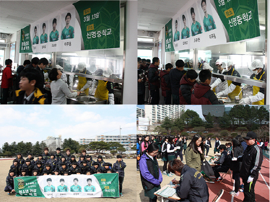 13일 신명중학교 점심시간에는 충주험멜 선수 4명이 학생들을 위해 배식봉사활동과 팬 사인회에 나섰다. 선수들은 위생장비를 갖추고 어색하지만 정성스레 배식활동에 임했고, 학생들은 기억에 남는 점심시간을 보냈다. 14일 오후 2시 예성여자중학교 운동장에서는 충주험멜 선수들이 예성여중 학생들과 함께 체육수업시간을 보냈다. 이어진 운동장 팬 사인회에서는 준비된 사인지가 부족할 정도로 예성여자중학교 학생들의 반응이 뜨거웠다.