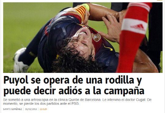 스페인 스포츠지 엘문도데포르티보, 스포르트를 비롯한 주요 언론들은 '푸욜이 15일 오른쪽 무릎 수술을 받았다'고 전했다. 푸욜은 그동안 오른쪽 무릎 통증으로 고생해왔다. 지난 12일 누캄프에서 열린 AC밀란과의 2012~2013시즌 유럽챔피언스리그 16강 2차전에서도 벤치에서 경기를 시작했다. 이번 수술은 오른쪽 무릎 문제를 해결하기 위한 것으로 보인다.
