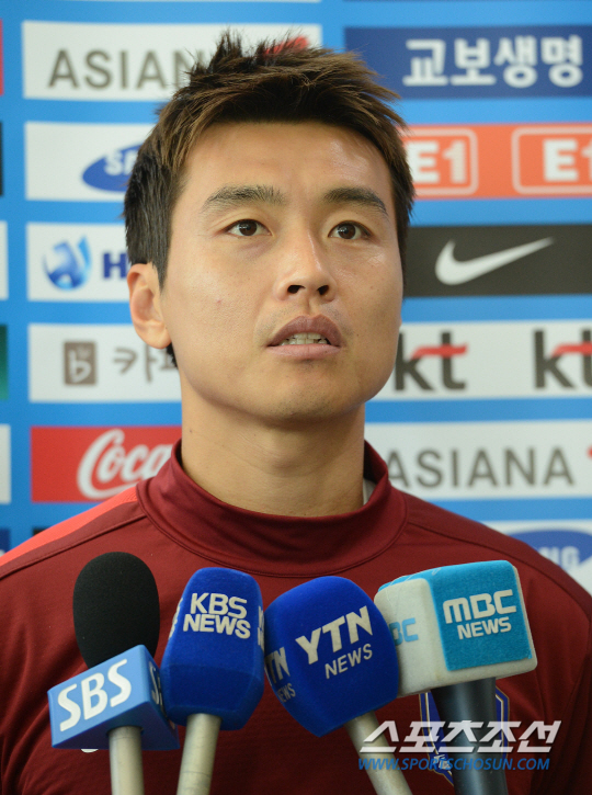 축구대표팀이 20일 오후 파주NFC에서 훈련을 하며 오는 26일 카타르를 상대로 치르는 2014 브라질월드컵 아시아지역 최종예선 5차전에 대비했다. 훈련에 앞서 이동국이 공식 인터뷰를 하고 있다. 파주=정재근 기자 cjg@sportschosun.com