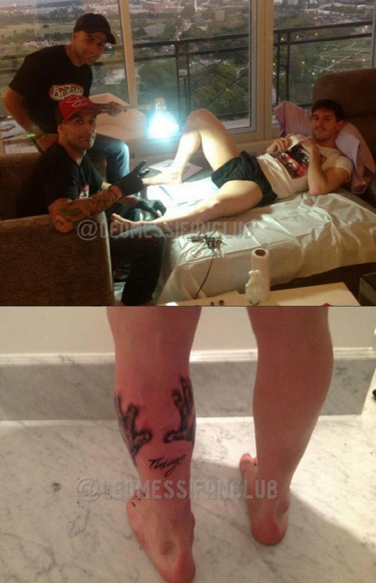 메시의 팬클럽 트위터는 메시가 타투 시술을 받는 사진을 공개하고 "타투 대학 4학년생이 메시의 의뢰를 받고 기꺼이 램프를 들고 있다"고 소개글을 올렸다.