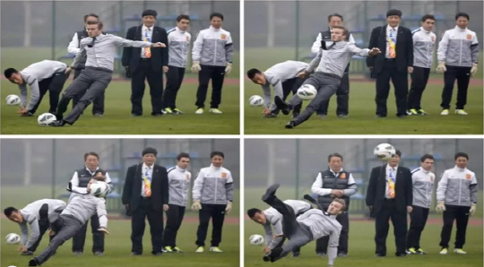 천하의 데이비드 베컴(파리 생제르맹)이 프리킥 시범을 보이다 넘어져 큰 웃음을 안겼다.