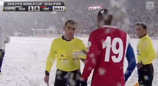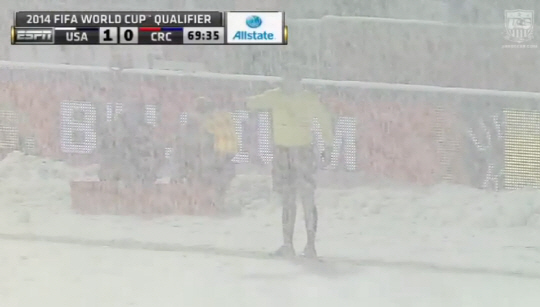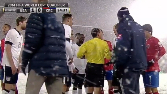 이유는 경기장 환경 때문이다. 이날 경기는 폭설이 내리는 가운데 진행이 됐다. 후반 중반 심판진이 한때 경기를 중단시킬 정도로 거센 눈발이 날렸다. 센터서클과 사이드라인 뿐만 아니라 주변 선수조차 분간하기 어려울 정도의 눈보라가 쳤다. 하지만 심판진은 논의 끝에 경기를 강행하기로 해 결국 전후반 90분을 모두 마무리 했다. 코스타리카 언론은 경기 후 '미국이 우리를 이길 방법은 이 정도 밖에 없었던 듯 하다'고 맹비난하고 있다.