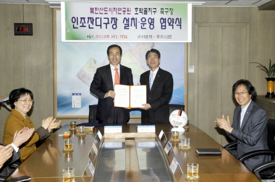 FC서울이 28일 서울 서대문구와 홍은 1동 호박골 축구장 인조잔디구장 조성협약을 맺었다.