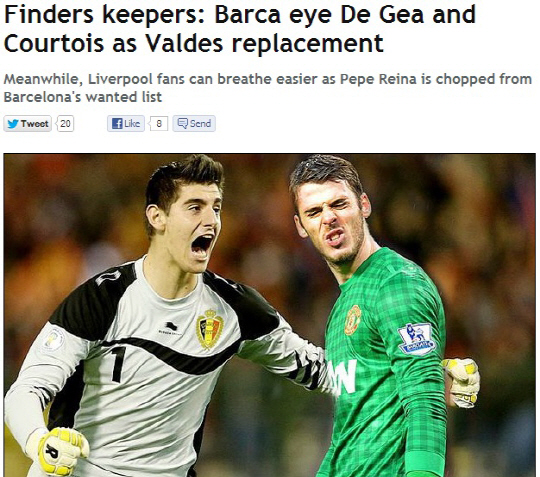 그동안 바르셀로나 골문을 지켜온 빅토르 발데스는 팀을 떠나겠다는 뜻을 일찌감치 나타냈다. 바르셀로나는 새로운 골키퍼 물색에 나섰다. 후보가 압축되는 분위기다. 29일(한국시각) 바르셀로나의 일간지 스포르트는 바르셀로나가 최종 3명의 후보를 정했다고 보도했다. 주인공은 맨유의 다비드 데헤아, 아틀레티코 마드리드의 티보 쿠르투와, 발렌시아의 비센테 과이타다. 바르셀로나는 리버풀의 페페 레이나와 바이에른 뮌헨의 마누엘 노이어도 물망에 올려놨었지만, 지금은 포기한 것으로 알려졌다.
