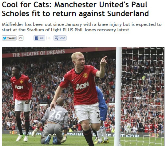 스콜스의 복귀로 맨유 미드필드에 숨통이 트였다. 잉글랜드 프리미어리그 우승이 어느정도 확정된 맨유는 더블 달성을 위해 4월 1일 첼시와의 FA컵 8강 재경기에 총력을 기울이고 있다. 선덜랜드전에서 주전들의 체력을 아껴야 한다. 선덜랜드전과 첼시전 사이에 단 2일 밖에 휴식시간이 없다. 스콜스의 복귀로 기존 선수들의 체력을 아껴줄 수 있게 됐다. 여기에 호재가 더 있다. 2월18일 이후 뛰지 못했던 필 존스 역시 출전이 가능할 전망이다.
