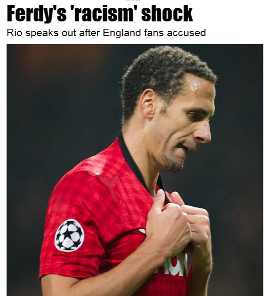 맨유의 중앙 수비수 리오 퍼디낸드가 충격에 휩싸였다. 잉글랜드 팬들이 그를 향해 인종차별적인 노래를 불렀기 때문이다.