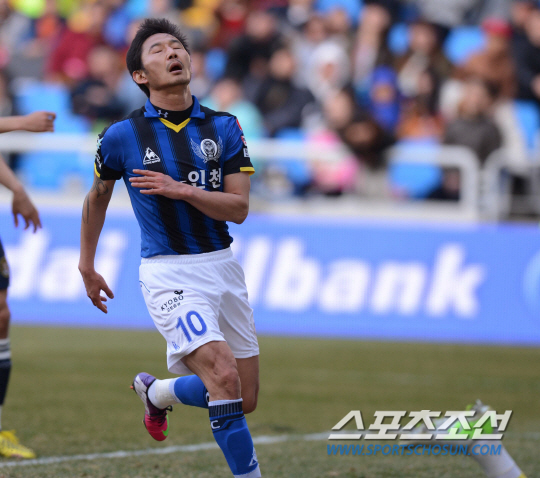 31일 오후 인천축구전용경기장에서 2013 프로축구 대전과 인천의 경기가 열렸다. 후반 교체출전 한 인천 이천수가 대전 골문 앞에서 볼을 놓친 후 아쉬워하고 있다. 인천= 김경민 기자 kyungmin@sportschosun.com / 2013.03.31. |