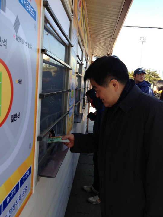 신선한 충격이었다. 성남과 수원전이 열린 지난달 3일이었다. 경기도 성남 탄천종합경기장 매표소에 프로축구판의 최고 어른이 줄을 섰다. '슈퍼 VIP'다. VIP 통로를 마다하고 매표 창구를 선택했다. 그는 경기장 서측매표소에서 팬들과 함께 기다렸다가 직접 티켓을 구매한 후 경기장에 입장했다. 2월 21일 K-리그 수장에 오른 신임 권오갑 프로축구연맹 총재였다.