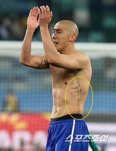가족사랑이 대단한 스포츠스타로 알려진 차두리는 심지어 상체 옆구리 부분에 '바코드 문신'이 포착돼 화제를 모은 바 있다.