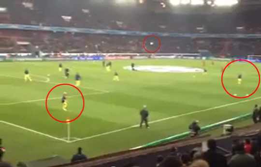 한 쪽 코너에 자리잡은 메시와 알베스는 '평소 하던 대로' 장거리 패스를 주고 받으며 몸을 풀었고 관중들의 감탄을 불러일으켰다.