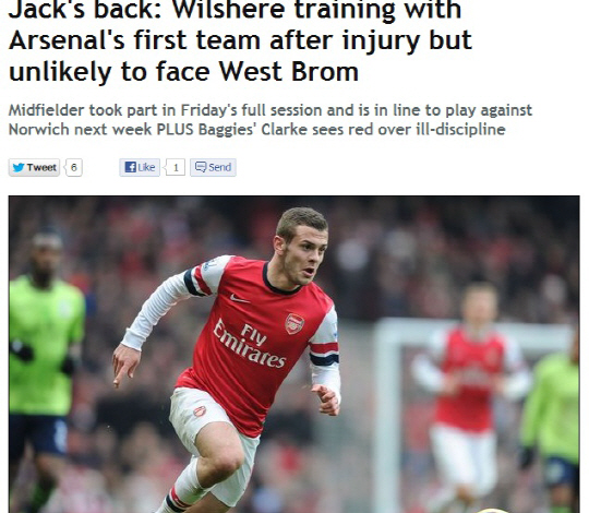 윌셔는 발목 부상으로 3주간 경기에 나서지 못했다. 6일(한국시각) 영국 일간지 데일리미러는 윌셔가 아스널 1군팀 훈련에 참가했다고 보도했다. 훈련은 시작했지만 바로 경기에 나설 것으로 보이지는 않는다. 윌셔는 이번 주말에 있는 웨스트브롬위치전에서 벤치라도 앉아있겠다는 뜻을 내비쳤지만, 아스널 측은 보다 몸상태를 끌어올린 후 다음주 노리치시티전부터 윌셔를 기용할 계획을 세웠다. 윌셔의 복귀는 유럽챔피언스리그 티켓을 노리는 아스널에 큰 힘이 될 전망이다.