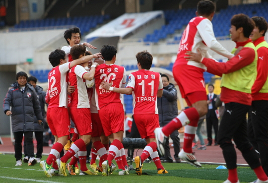 선수들의 내부 결속력이 그라운드에서 폭발했다. 부산은 전반 18분 윌리암의 결승골과 후반 26분 성남 수비수 윤영선의 자책골로 2대0 완승을 거뒀다. 선수들의 바람이 이뤄졌다. 안 감독 체제에서 볼 수 없었던 공격의 창의성이 성남의 밀집수비를 뚫는 원동력이 됐다. '독도남' 박종우는 "경기 중 안 감독님께서 '내려오라'고 소리치셨는데 순간 내가 내려갈 뻔했다. 그만큼 안 감독님의 영향이 컸다"고 했다. 그러면서 "감독님에게 진보된 모습을 보여드려서 기분 좋다. 선수들의 강한 의지가 그라운드에서 잘 보여졌다"고 말했다.