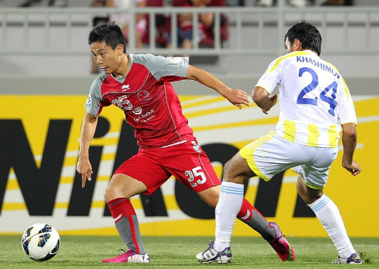 ◇남태희가 4일(한국시각) 카타르 도하의 칼리파 스타디움에서 열린 파크타코르(우즈벡)와의 2013년 아시아챔피언스리그 B조 3차전에서 수비수를 따돌리고 있다. 사진출처=레퀴야 구단 홈페이지