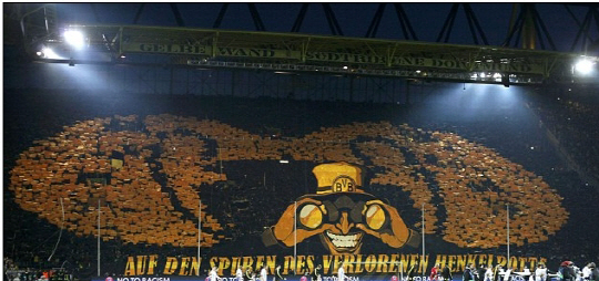 도르트문트는 경기 전 관중석을 화려하게 도배하는 팀으로 유명하다. 2011~2012시즌 아스널과의 챔피언스리그 조별예선에선 왕관이 등장하고 팬들은 금색으로 4개의 띠를 형성해 고급스러움을 강조했다. 2010~2011시즌 독일 분데스리가 우승 팀인 도르트문트의 자부심을 의미하는 카드섹션이었다.