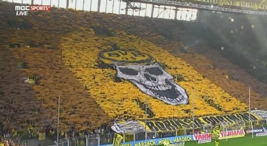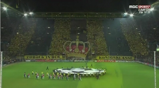 도르트문트 팬들은 10일(한국시각) 독일 지그날 이두나 파크에서 벌어진 말라가(스페인)와의 2012~2013시즌 유럽챔피언스리그 8강 홈 2차전에서 만화같은 카드섹션을 선보였다.
