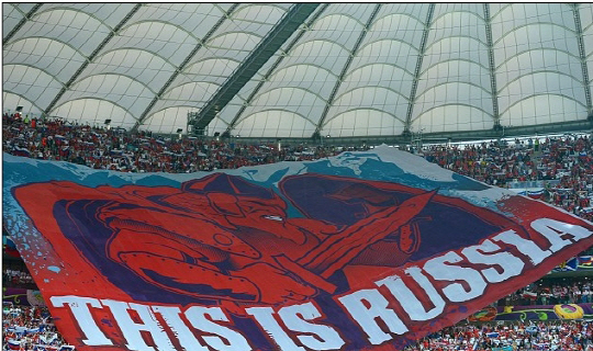 러시아는 폴란드와의 유로2012 경기에서 '이것이 러시아'라는 문구와 칼과 방패를 든 캐릭터를 그린 대형 통천을 내걸었다. 크로아티아도 지난달 세르비아와의 2014년 브라질월드컵 유럽지역 에선에서 불사신을 상징하는 크로아티아 선수가 담긴 대형 통천을 걸었다.