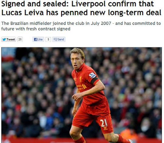 리버풀이 루카스 레이바와 재계약에 성공했다.