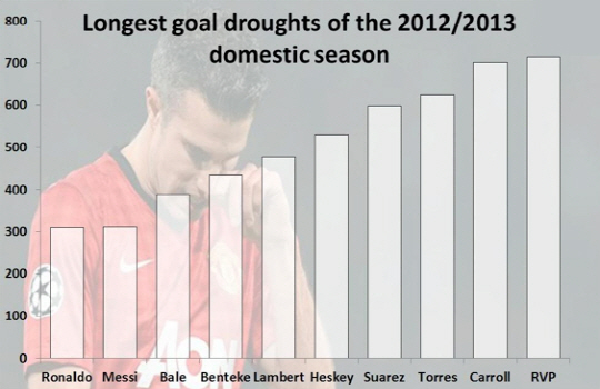 영국 '데일리 메일'은 반 페르시가 수아레스, 가레스 베일(토트넘)과 '올해의 잉글랜드 선수' 3파전을 벌이고 있었던 점을 상기시키면서 "그가 빠른 시간 안에 득점을 하지 못하면 올해의 선수 후보에서 탈락하게 될 것"이라고 지적했다. <스포츠조선닷컴>