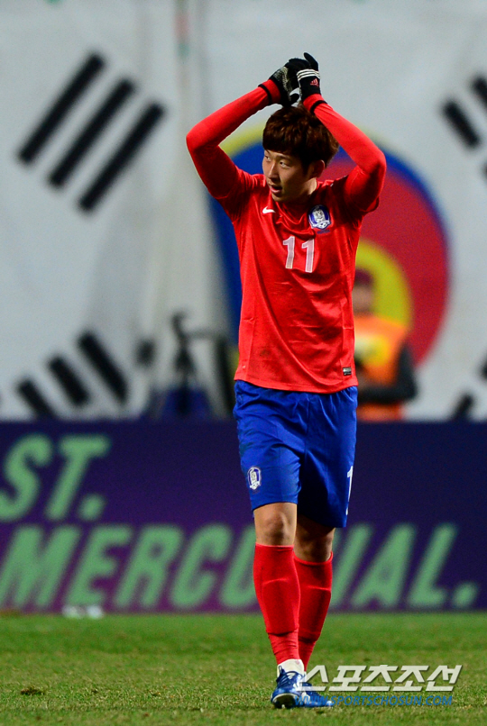 최강희호가 26일 상암동 서울월드컵경기장에서 카타르와 브라질월드컵 아시아지역 최종 예선전을 펼쳤다. 결승골을 성공시키고 손을 들어 기뻐하고 있는 손흥민. 상암=송정헌 기자 songs@sportschosun.com