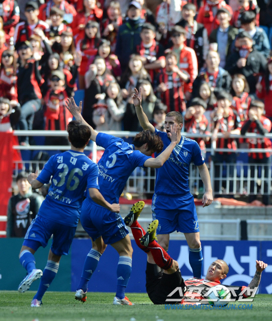 초반 분위기는 서울이 잡았다. 차두리까지 투입한 서울은 공세로 나섰다. 전반 19분 첫 골이 나왔다. 고명진이 왼쪽을 돌파한 뒤 중앙으로 볼을 투입했다. 볼을 잡은 데얀이 중앙에서 강력한 중거리슈팅으로 골문을 갈랐다.