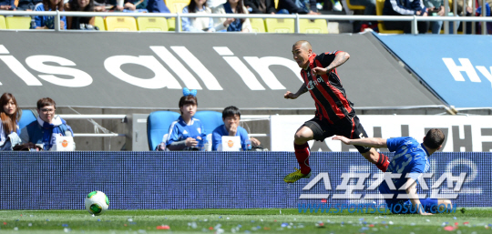 정대세가 올해 초 먼저 K-리그를 노크했다. 조언을 구한 주인공은 차두리였다. 수원을 추천했다. 이어 차두리가 지난달 뒤늦게 K-리그에 입성했다. 둥지는 FC서울이었다. 둘의 재회는 K-리그 최고의 흥행카드가 됐다. 이미 한 차례 장외에서 '설전'을 벌였다. 차두리는 입단 기자회견에서 정대세에 대한 질문이 끊이지 않자 "사실 대세를 잡으러 서울로 오게 됐다"며 웃었다. 정대세도 "측면에서 두리 형과 싸우겠다"고 당당하게 밝혔다. 그러나 맞대결은 다소 싱거웠다. 특별한 맞대결은 없었다. 차두리는 오른쪽에, 정대세는 중앙에 포진하며 직접 부딪히는 장면이 연출되지 않았다. 전반 4분 차두리에 정대세가 태클을 시도한 것이 전부였다. 둘의 대결은 정대세가 전반 38분 경고누적으로 퇴장당하며 막을 내렸다.