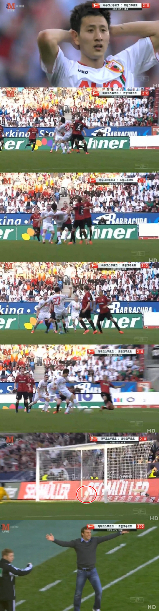 유럽리그 진출 첫 멀티골을 기록했지만 '해트트릭' 기회를 놓친 점은 두고두고 아쉽다. 전반 28분 감각적인 오른발 선제골 이후에도 지동원은 공세를 늦추지 않았다. 전반 44분 '노골 선언'은 팬들 사이에도 논란이 됐다. 상대 수비수들과 경합 과정에서 적극적으로 볼을 따냈다. 볼을 따내자마자 지체없이 돌아서며 센스있는 오른발 슈팅을 성공시켰다. 그러나 주심은 볼을 따내는 발이 높았다고 판정했다. 공격자 파울이 선언되며, 골이 무산됐다. 노골 판정에 바인지를 감독이 두팔을 들어올리며 격하게 항의했다. 지동원도 머리를 감싼 채 어리둥절한 표정으로 반발했지만 돌이킬 수 없었다. 빅리그에서 해트트릭의 기회가 무산됐다. 그러나 지동원은 평정심을 잃지 않았다. 심판 판정에도 굴하지 않았다. 최상의 골감각을 과시했다. 후반 10분 또다시 지동원의 왼발이 빛났다. 오프사이드 트랩을 절묘하게 빠져나가는 영리한 슈팅으로 승리에 쐐기를 박았다. 페널티 지역 왼쪽에서 얀 모라벡의 스루패스를 받아 깔끔한 왼발 슈팅을 날렸다. 짜릿한 키스세리머니를 선보이며, 유럽리그 첫 멀티골과 팀의 승리를 자축했다. 독일 분데스리가 공식 홈페이지는 경기후 지동원을 프랑크푸르트전 최우수 선수로 선정했다. 독일 전문지 '빌트'는 평점 2점을 부여했다. 1~6점까지 부여되는 평점은 낮을수록 좋은 점수다. 지동원은 양팀 선수를 통틀어 가장 높은 점수를 받았다.