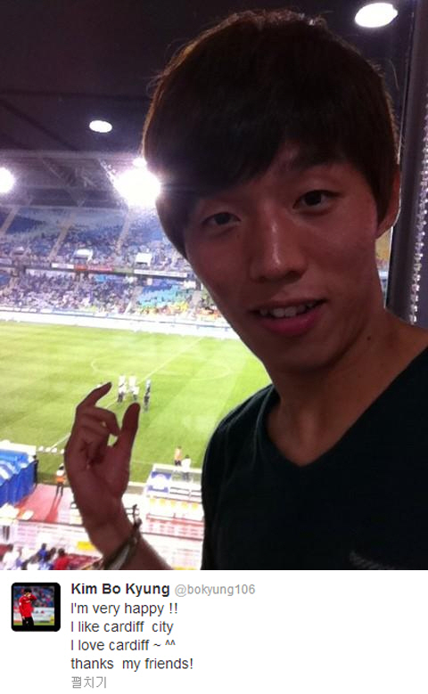 김보경은 17일 EPL 승격을 확정지은 찰튼 전 직후 자신의 트위터에 영어로 "정말 행복합니다. 카디프 시티 사랑해요. 친구들 고마워요.(I'm very happy!! I like cardiff city. I love cardiff thanks my friends!"라며 특별히 영어를 사용해 인사를 전했다.
