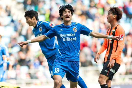 '철퇴축구' 울산 현대에도 '5단기어'가 장착됐다. 주인공은 '꽃미남 신인' 박용지(21)다. 김호곤 울산 감독은 박용지를 올시즌 '후반 조커'로 중용하고 있다. 전체적인 기량은 아직 덜 여물었다. 그러나 빠른 스피드는 프로 무대에서도 충분히 통할 것이라고 내다봤다. 예상은 적중했다. '박용지 효과'는 격렬한 싸움으로 체력이 떨어진 후반 중반부터 발휘된다. 상대 측면과 중앙을 거침없이 파고든다. 박용지의 '총알탄 돌파'를 저지할 수 있는 방법은 파울뿐이다. 박용지는 올시즌 상대 선수 퇴장을 두 차례나 이끌어냈다. 6일 FC서울전(2대2 무)에선 수비수 김주영을, 13일 부산전(0대0 무)에선 미드필더 이종원의 경고누적 퇴장에 기여했다. 박용지는 "(주영이 형과) 충돌하면서 통증이 있어 그라운드에 누워있었다. 형이 퇴장당한 것도 뒤늦게 알았다. 경기를 다시 시작했는데 뭔가 허전하더라"며 웃었다. 박용지의 100m 기록은 11초대 초반이다. 김광수 울산 매니저에 따르면, 팀 내에서 가장 빠른 선수다. 롤모델도 빠른 선수들을 꼽았다. 이청용(볼턴)과 네이마르(산토스)다.