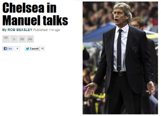 18일(한국시각) 영국 일간지 더선은 페예그리니 감독의 에이전트와 첼시가 협상을 시작했다고 보도했다. 페예그리니 감독은 말라가를 유럽챔피언스리그 8강에 이끌며 다시 한번 지도력을 인정받았다. 아쉽게 도르트문트에 패하며 4강진출에는 실패했지만 레알 마드리드에서의 실패를 만회하기에는 충분한 모습이었다.