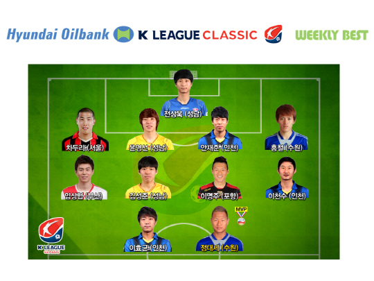 정대세와 함께 올 시즌 K-리그의 핫 아이템인 이천수(인천)와 차두리(서울)도 베스트 11에 이름을 올렸다. 이천수는 전북과의 홈경기에서 어시스트를 기록하며 팀의 3대1 승리를 이끌었다. K-리그 클래식 무대에서 1420일만에 기록한 공격포인트였다. 7라운드에 이어 2회 연속 베스트 11 선정이다. 차두리 역시 대구와의 홈경기에서 1도움을 기록하면서 4대0 대승을 이끌었다. 국내 무대 첫 공격포인트다.