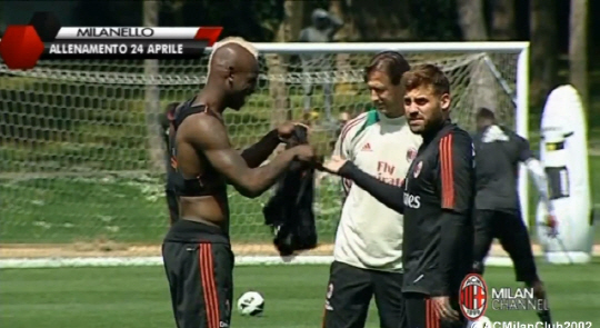그를 도와주던 동료 미드필더 안토니오 노체리노가 무언가 짜증 섞인 발언과 표정을 취하고 발로텔리도 자신의 미숙함을 인정하는 듯 너털웃음을 짓는다.