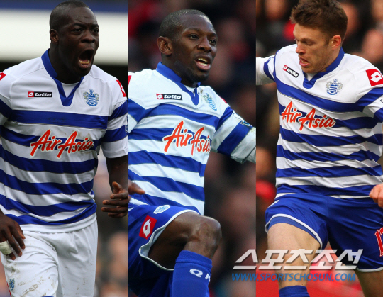 최근 1무4패를 당한 QPR은 4승12무18패(승점 34)로 19위에 머물며 강등을 피하기 어려워졌다. 29일 최하위 레딩전에서 지거나 비기면 바로 '호흡기'를 떼게 된다. <스포츠조선닷컴, 사진=TOPIC/Splash News 왼쪽부터 삼바, 라이트-필립스, 매키>